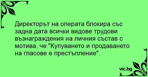 Direktort Na Operata Blokira Ss Zadna Data Vsichki Vidove Trudovi Vznagrazhdeniya Na Lichniya Sstav S Motiva Che Kupuvaneto I Prodavaneto Na Glasove E Prestplenie